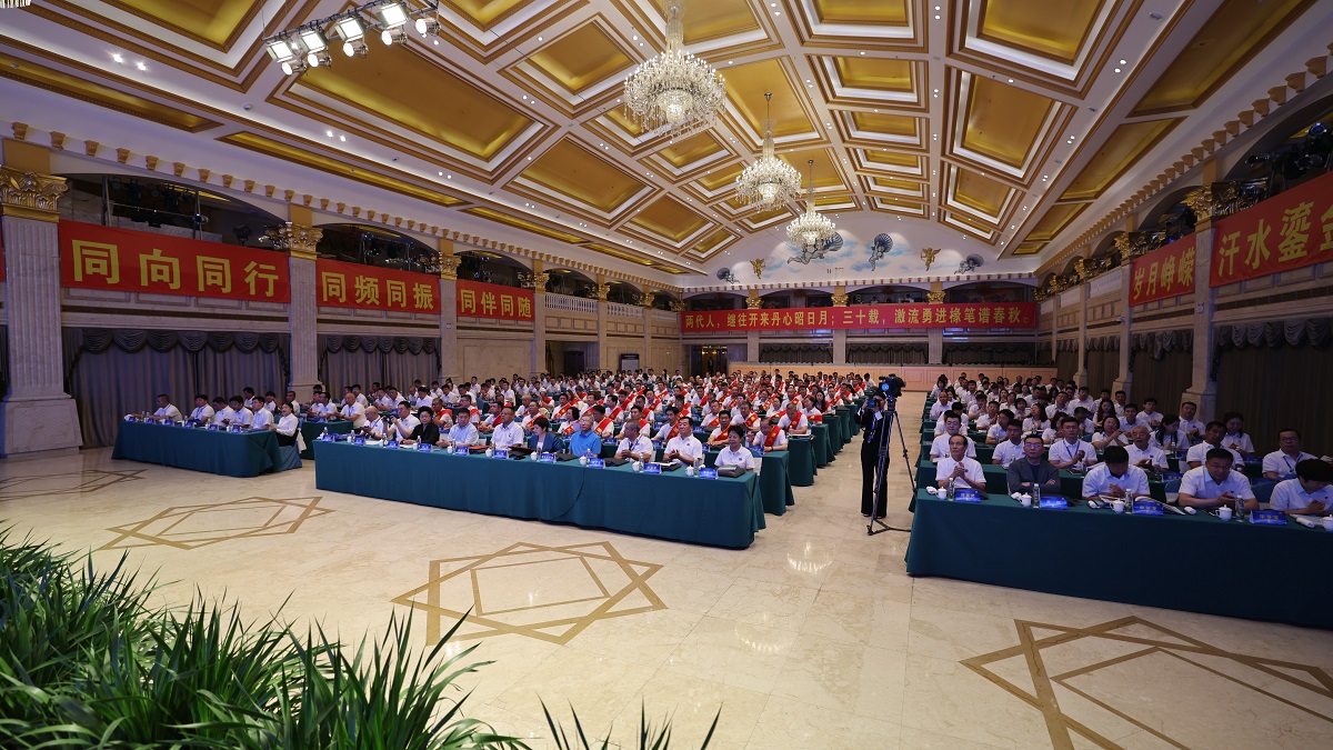 7月6日上午,源源集团成立三十周年表彰大会在源源国际酒店金梦殿堂隆重召开。霍林郭勒市委副书记、政法委书记塔娜,为霍林郭勒市发展作出贡献的老一辈创业者,源源集团董事长乔丽博,党委书记兼副董事长王爱华等企业高管,已退休的源源集团老领导、老员工和社会各界朋友、合作伙伴,企业员工代表等近300人参加会议。