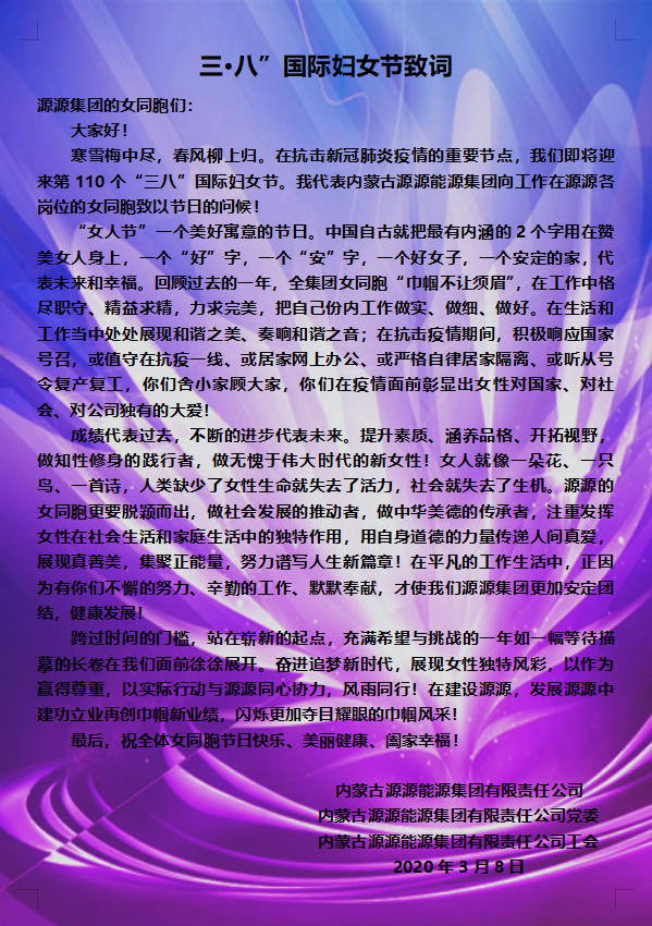 2020妇女节慰问信